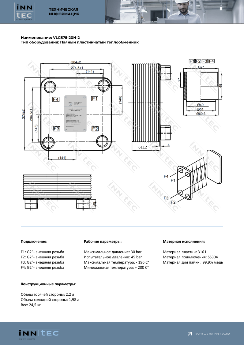Купить INN-TEC Паяный пластинчатый теплообменник VLG575-20H-2"